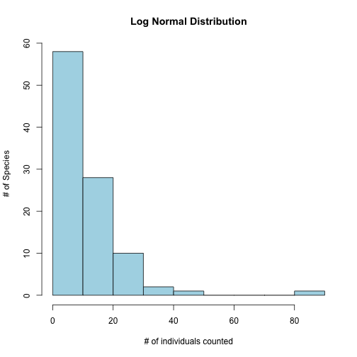 Most species are moderately abundant; few are very abundant or extremely rare